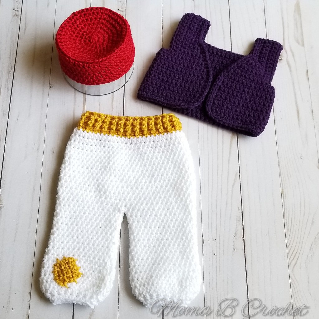 Hi there! This listing is for a Aladdin Baby Set. This set includes a hat, vest, and pants.